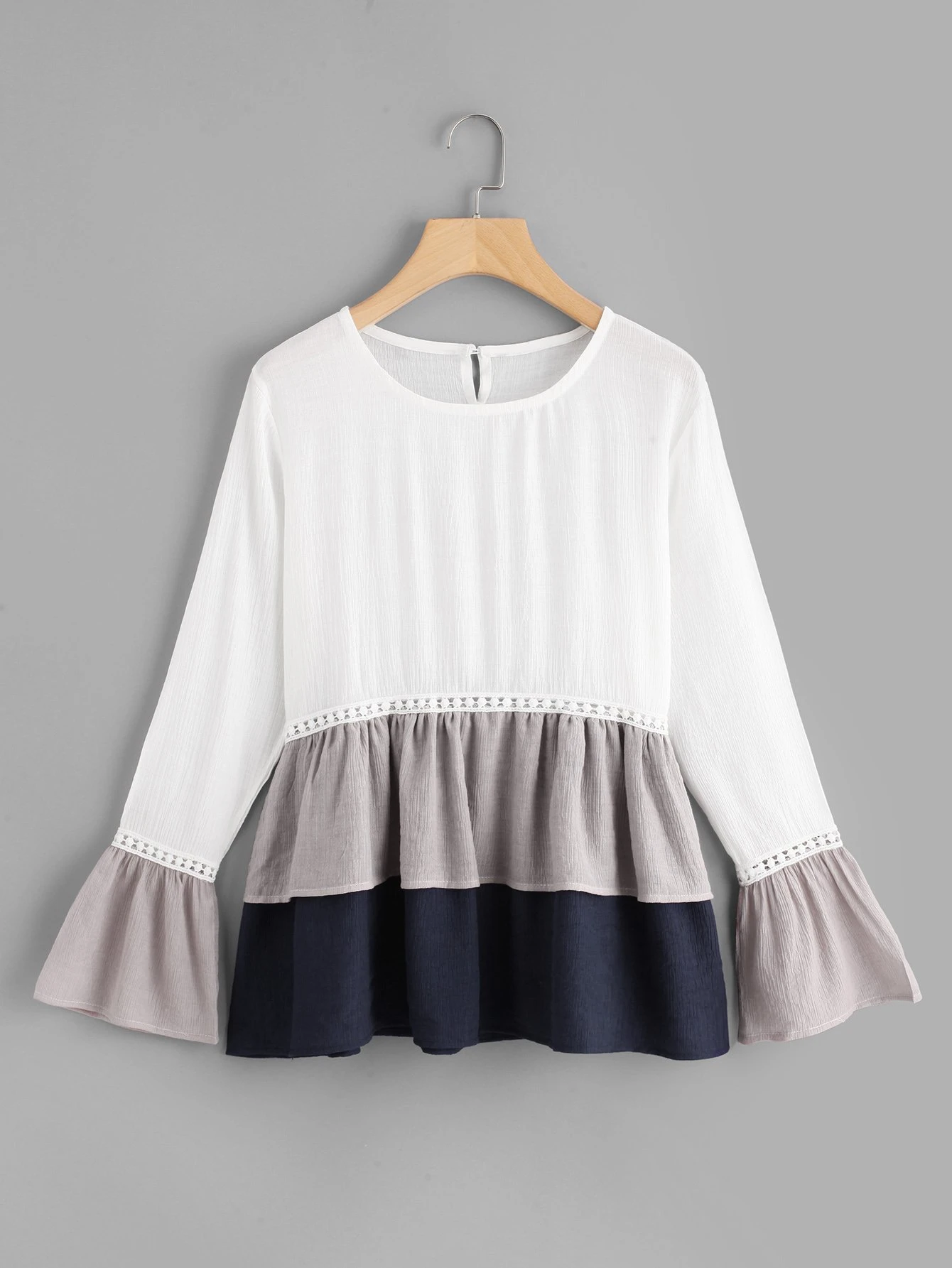 - Cheap Flounce sleeve colorblock smock top