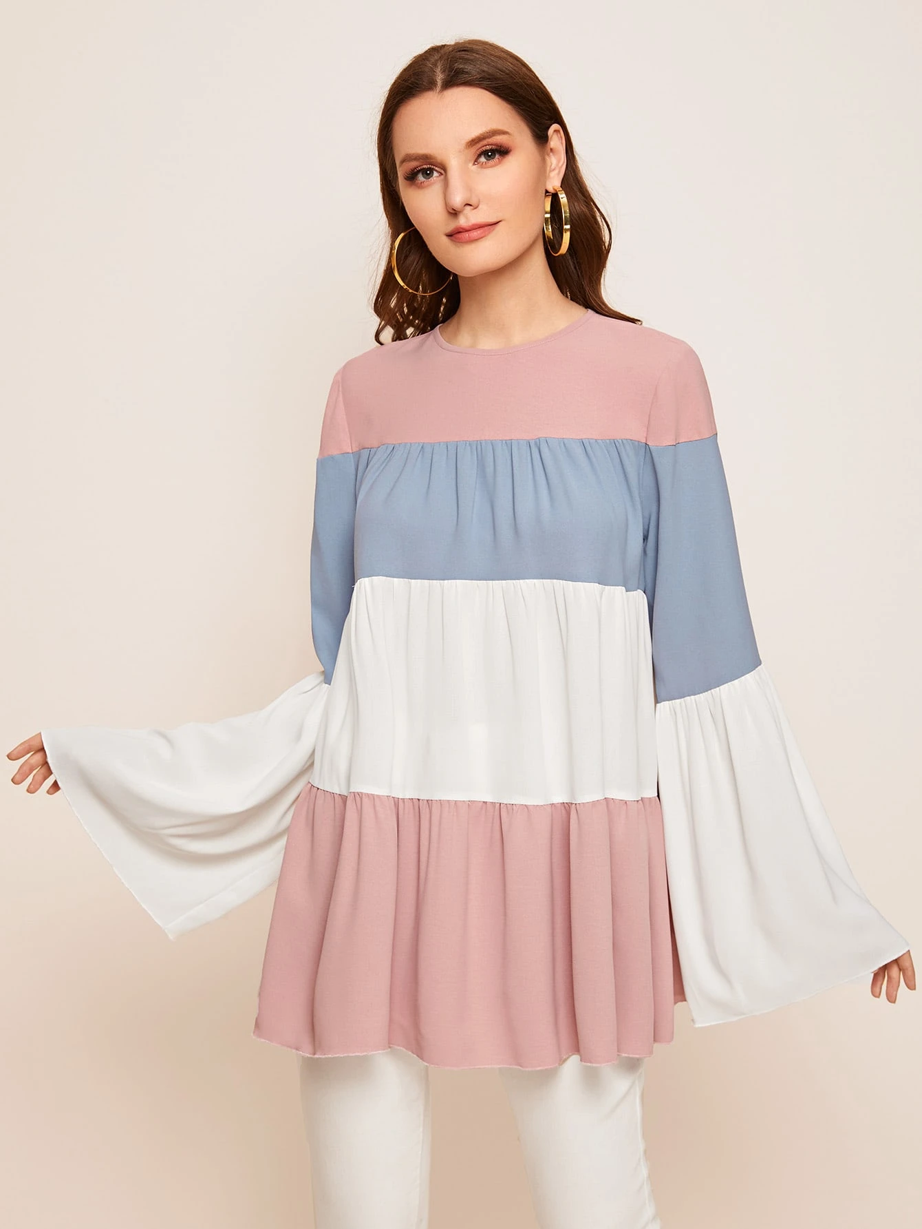 - Flounce sleeve colorblock smock top shop