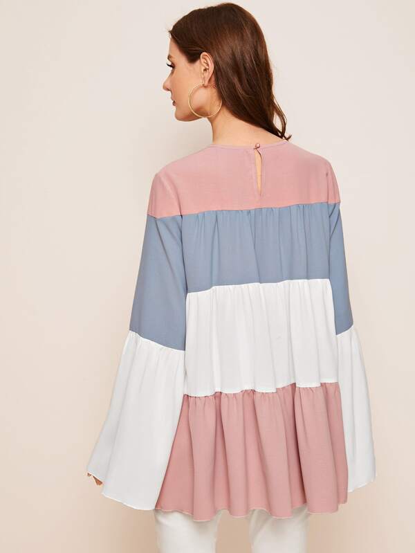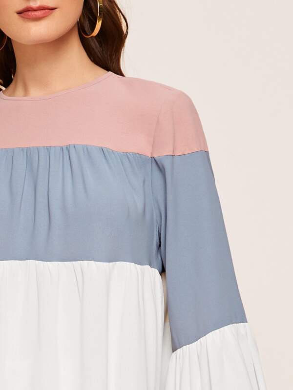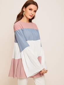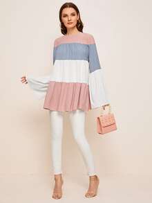 - Flounce sleeve colorblock smock top