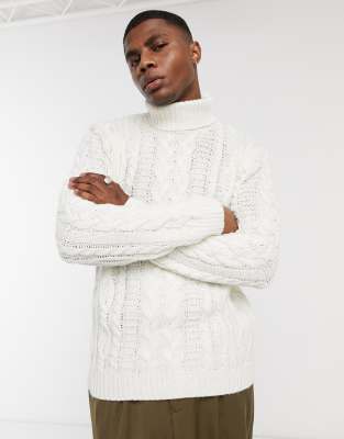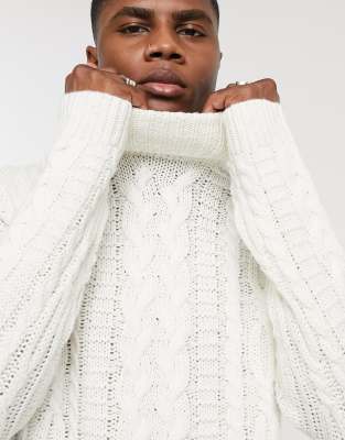 White knitted roll neck jumper clearance, ASOS DESIGN heavyweight cable knit roll clearance