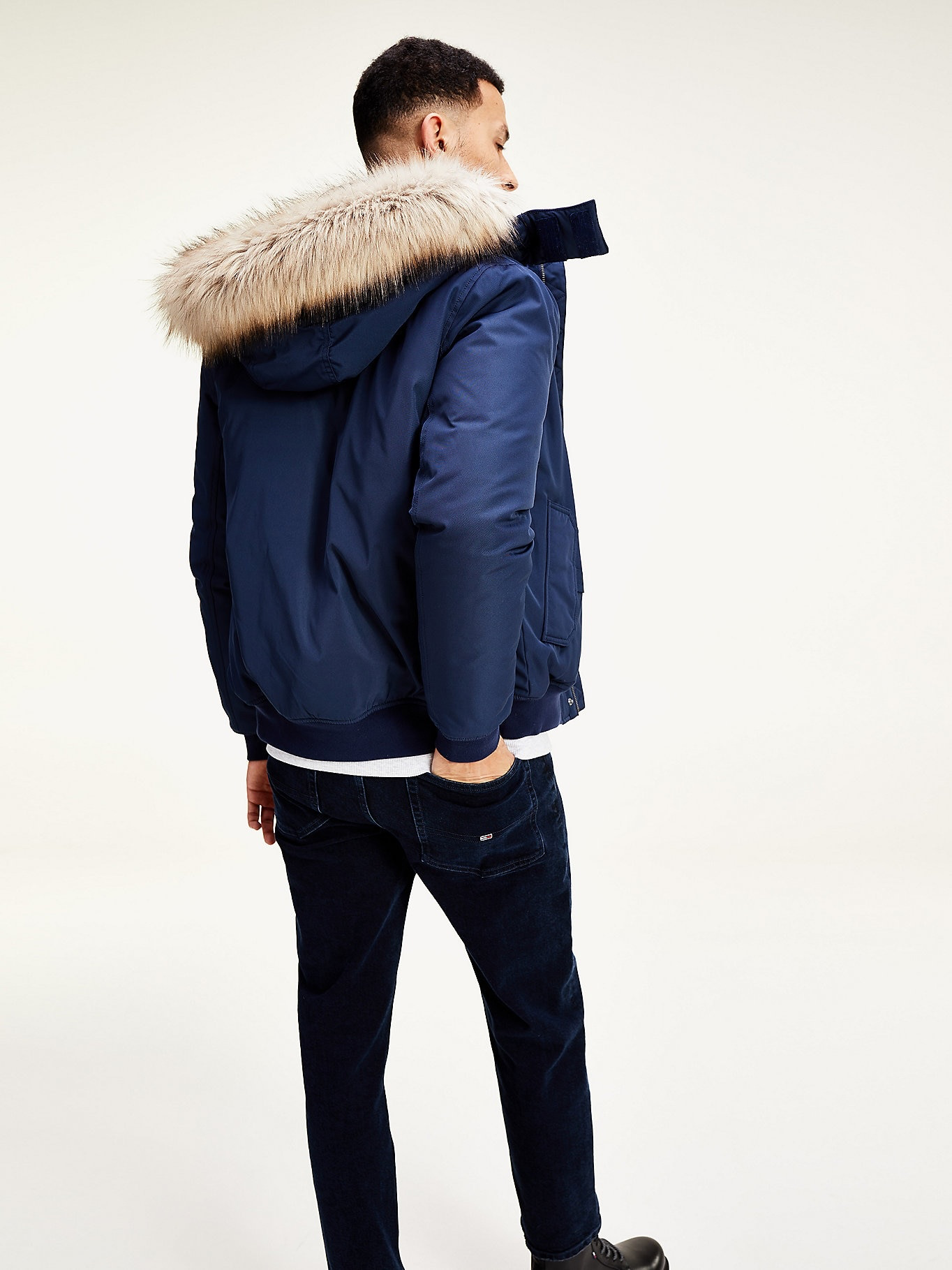 - Fur detail hooded bomber jacket shop