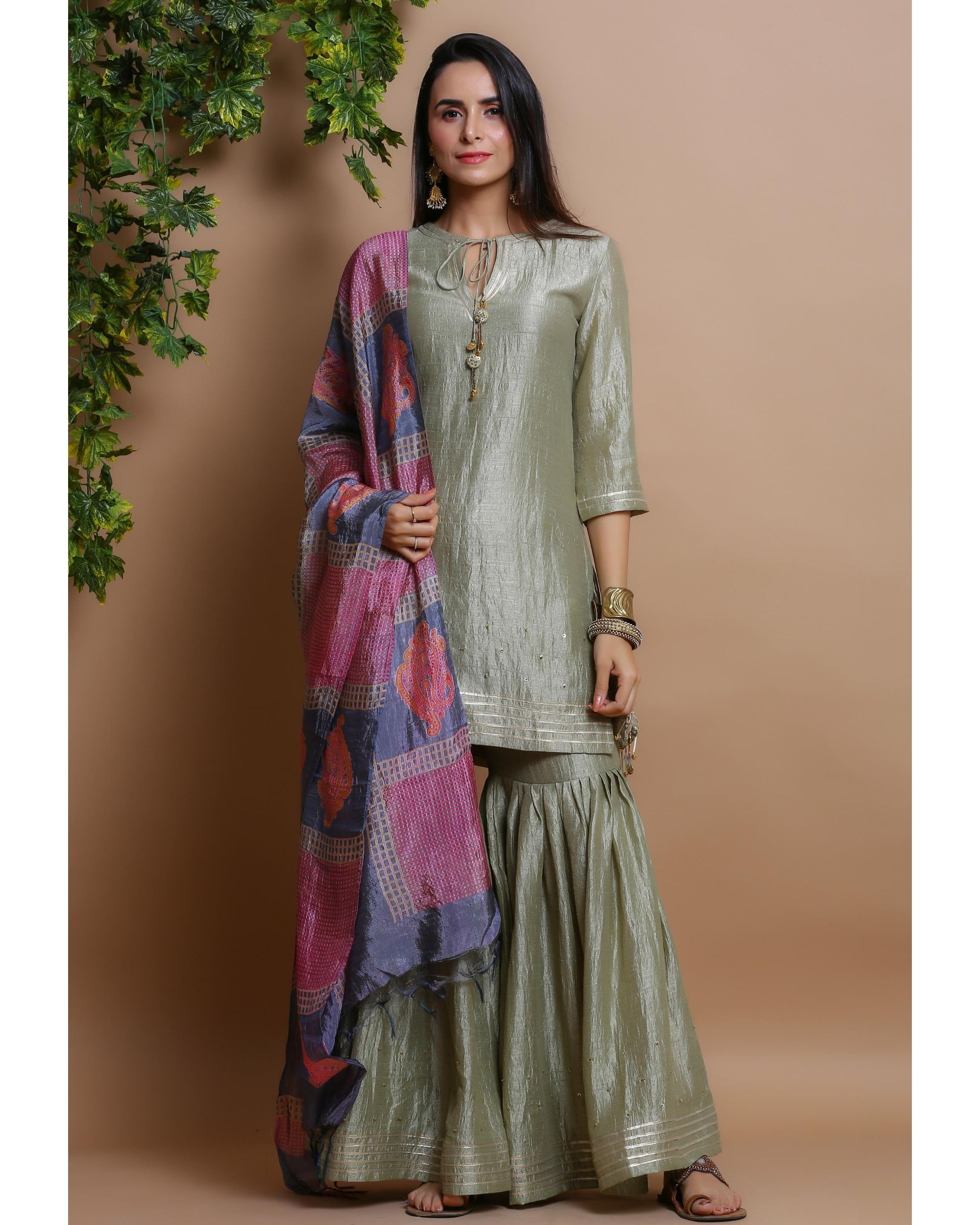 Multi color sharara clearance, Amber Shirt - Pink Peach Dupatta clearance