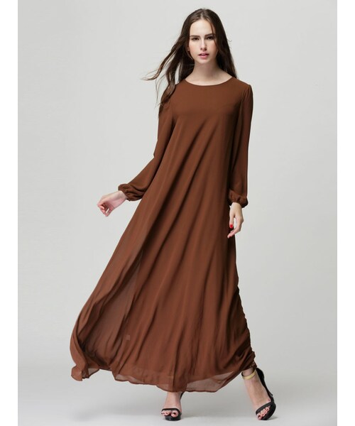 - Shopping Brown long sleeve maxi dress