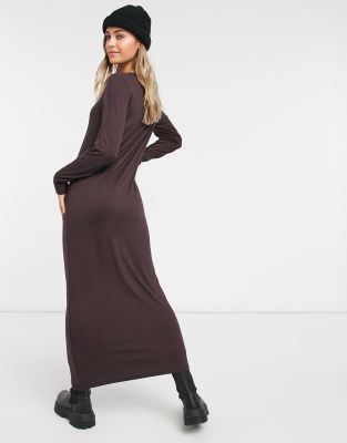 Brown long sleeve maxi dress clearance