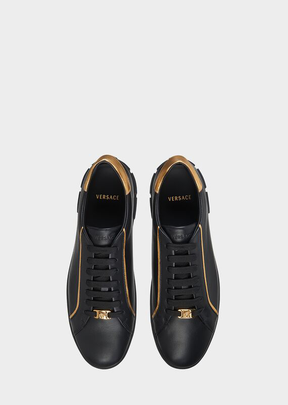 Black sneakers with gold trim clearance, Medusa Gold Trim #sneakers - White clearance