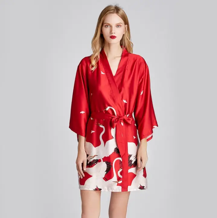 Satin morning gown clearance, Women's Satin morning gown silk printed clearance