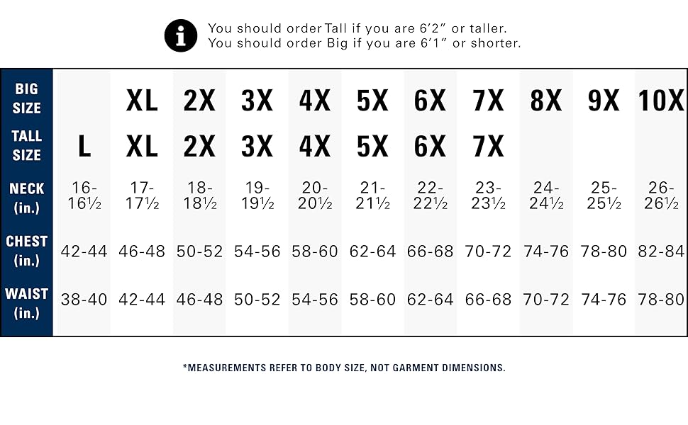 - Big and tall sizes explained free shipping