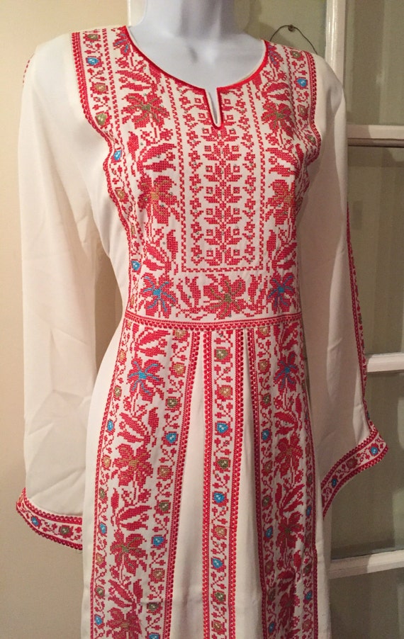 White palestinian thobe clearance, Palestinian embroidery dress clearance