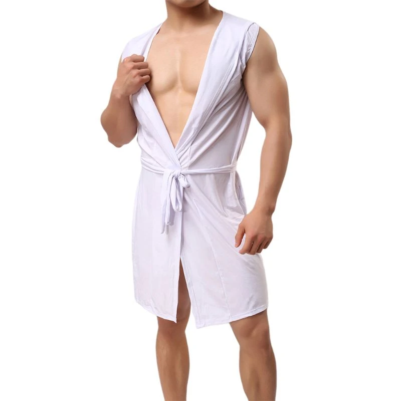 Sleeveless summer robes clearance, Mens Summer Ice Silk Kimono Bath Robe clearance