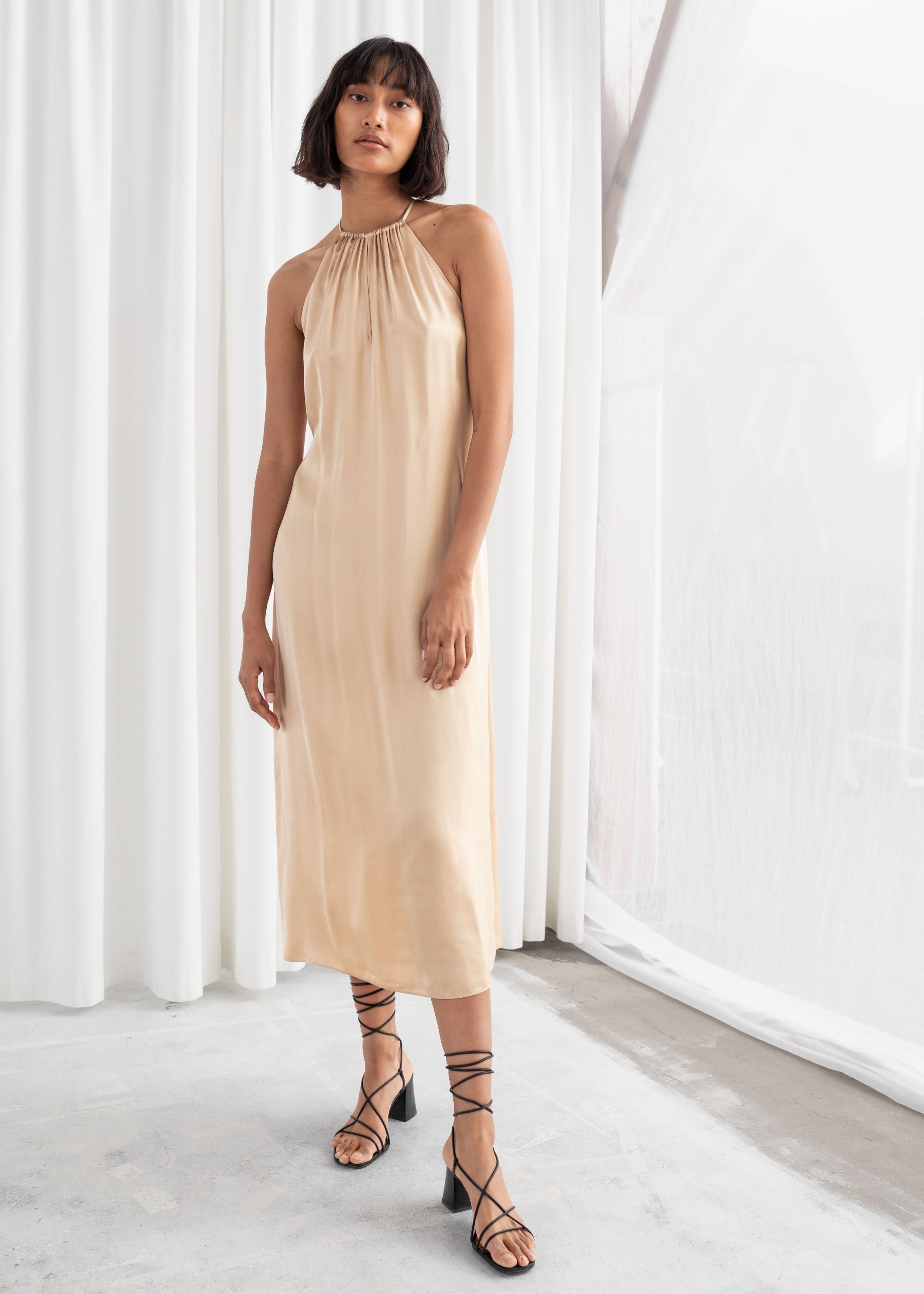 - Gathered halter dress other stories shop