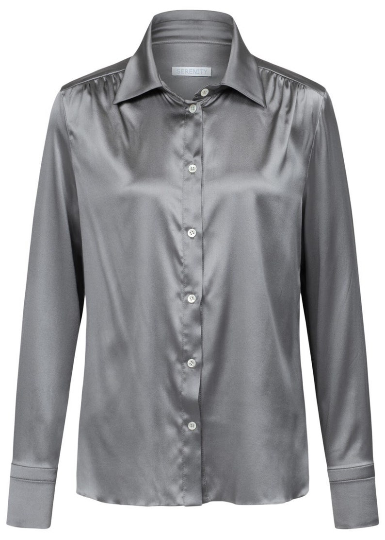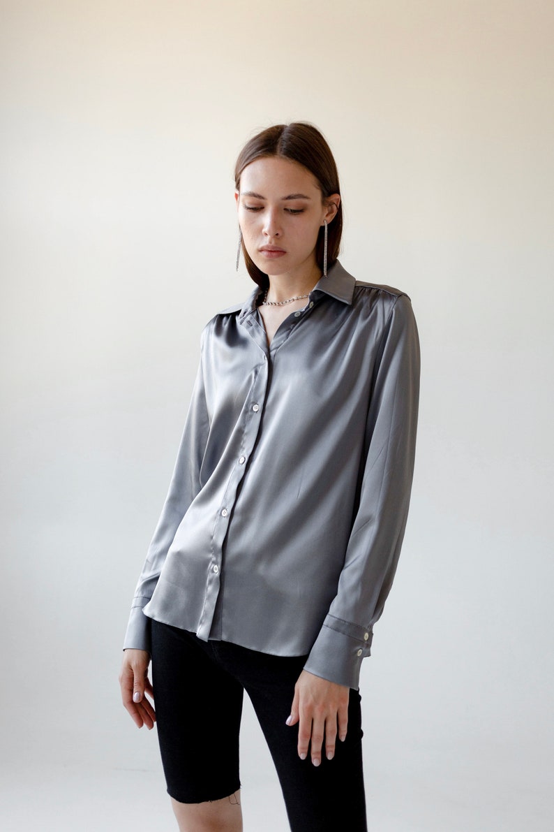 - Grey silk button down shirt shop