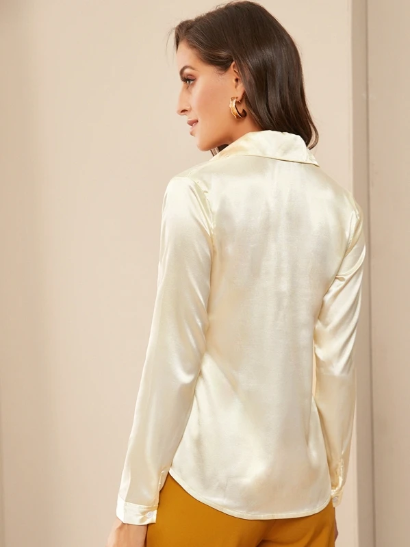 Silk shirt shein clearance, Satin Button Up Curved Hem Blouse clearance