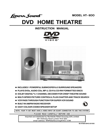 Lenoxx sound home theater system clearance, Lenoxx HT-395 User's Manual | Manualzz clearance