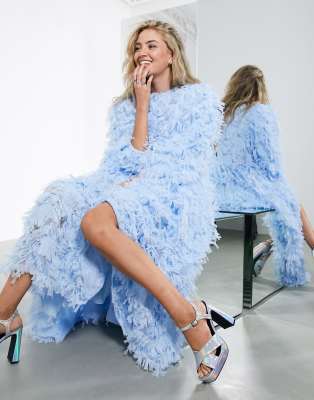 Asos edition kleid clearance, ASOS EDITION – Wadenlanges Oversized-Kleid aus strukturiertem Netzstoff in Blassblau clearance