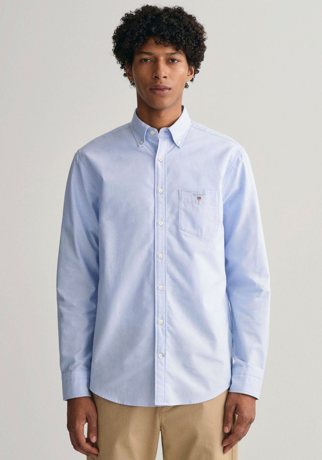 Gant hemden regular fit clearance, Gant Langarmhemd Regular Fit Oxford Hemd strukturiert langlebig dicker mit Logostickerei auf der Brusttasche, Langarmhemd mit Button-down-Kragen für einen klassischen und stilvollen Look clearance