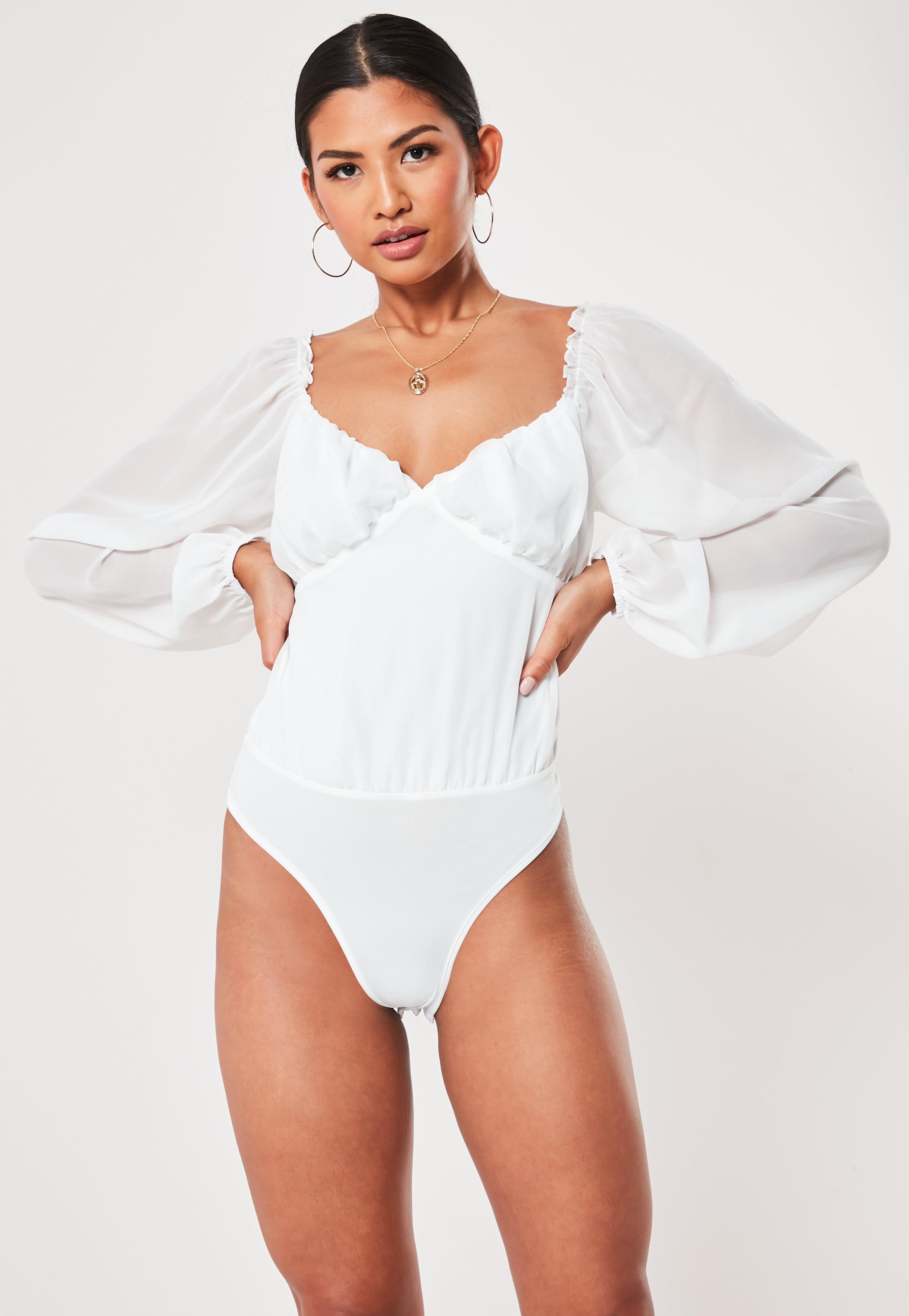 - White sheer long sleeve bodysuit clearance