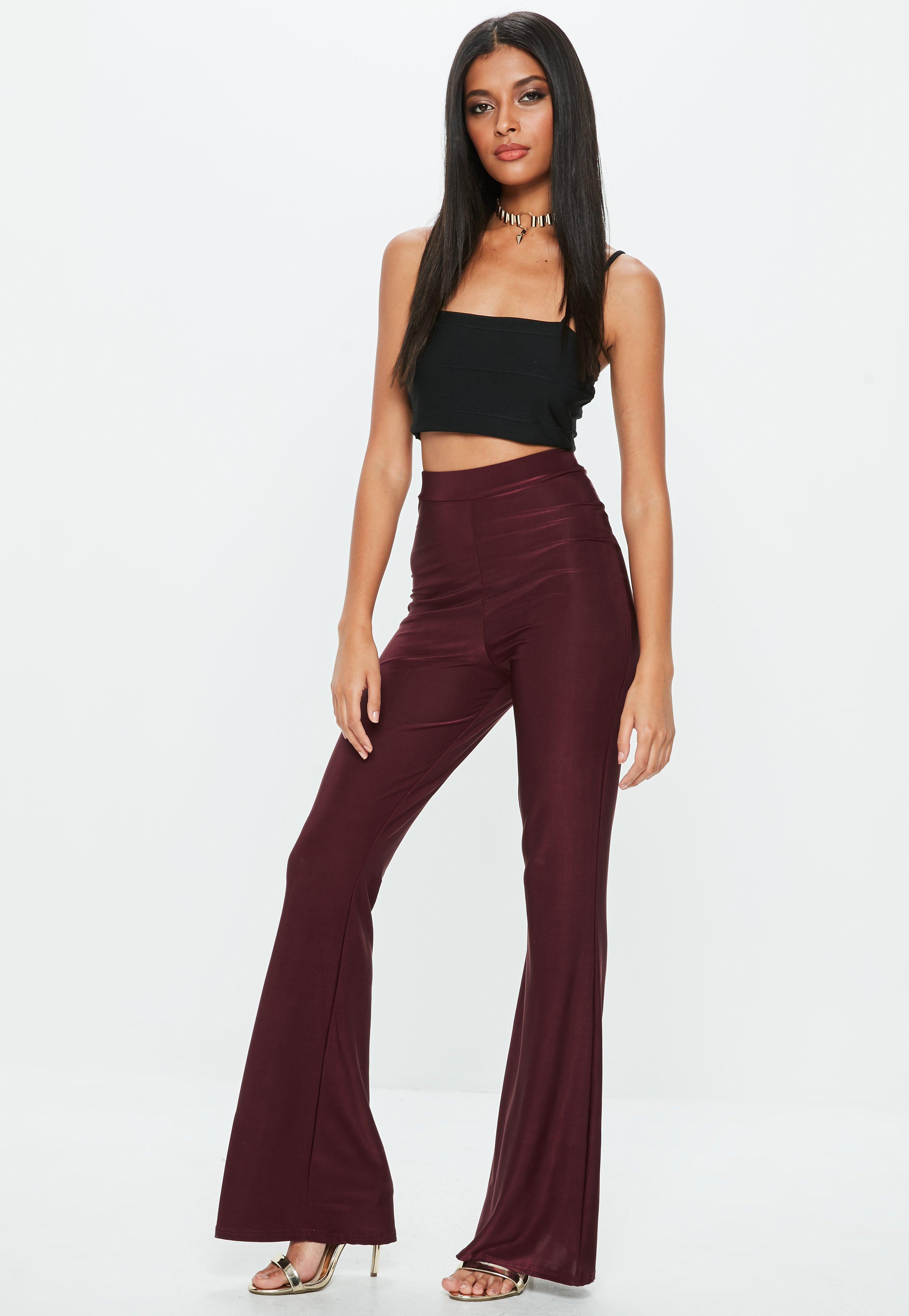 Burgundy flared trousers clearance, Missguided Synthetic Burgundy Disco clearance