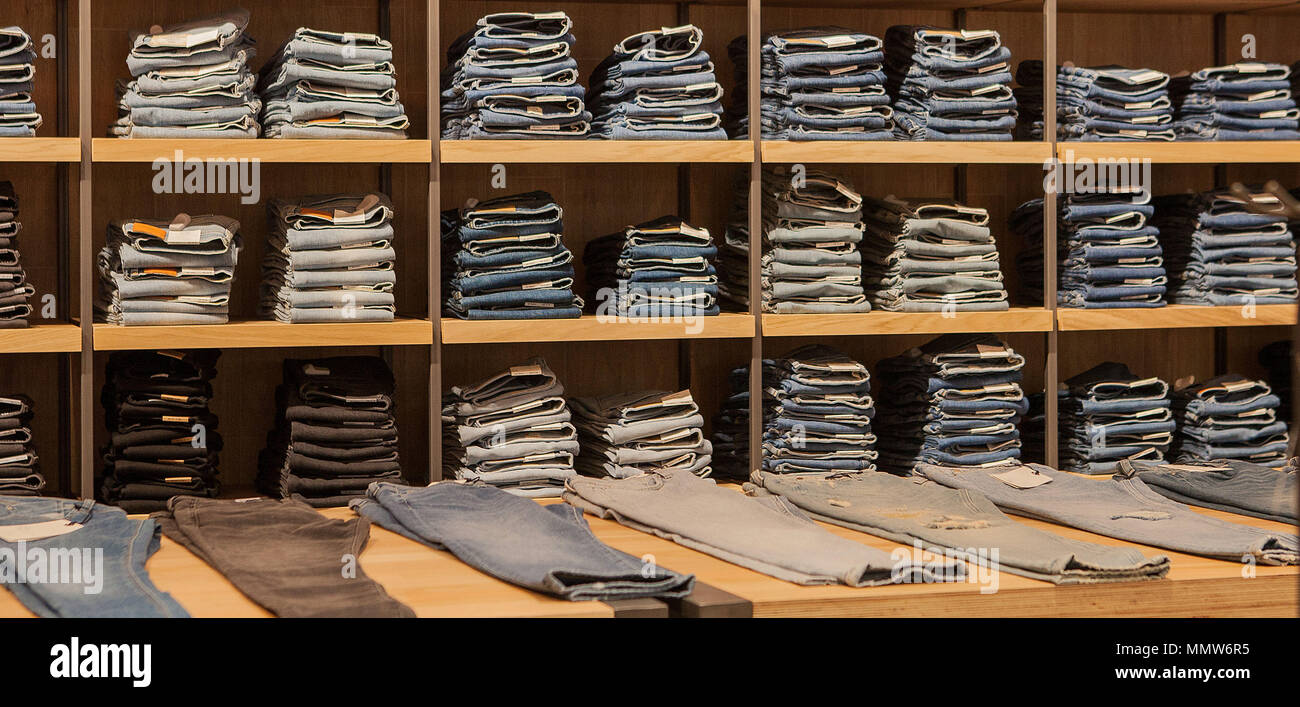 - Stacked pants in store outlet