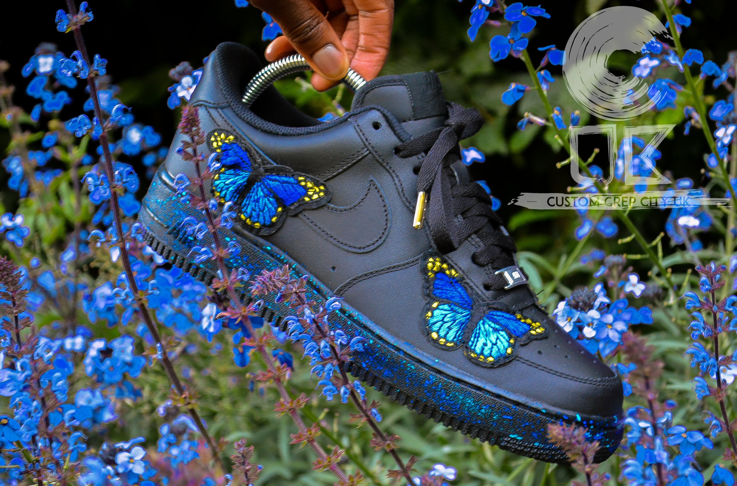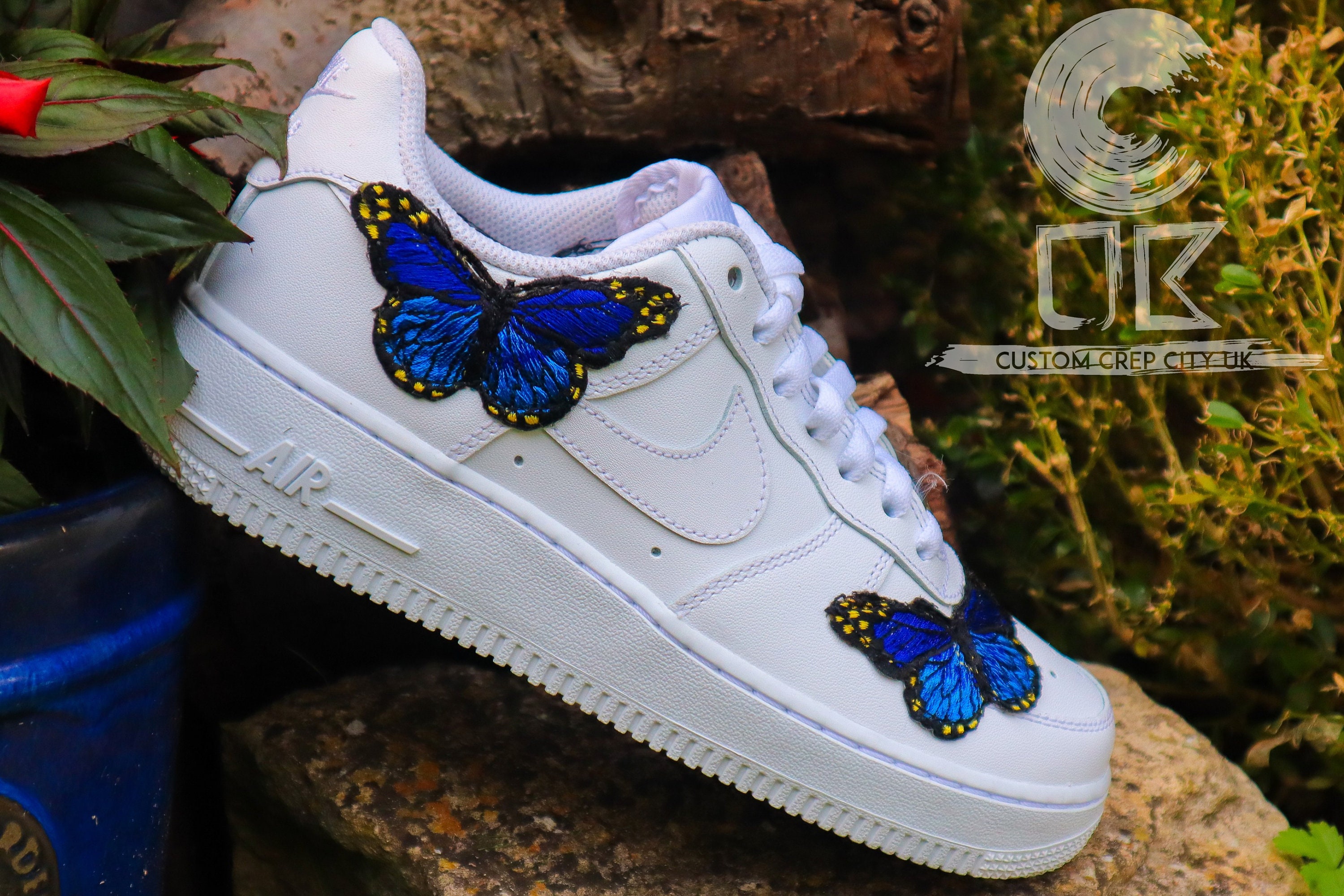 Nike butterfly trainers clearance, Custom Nike Air Force 1 Blue Butterfly clearance
