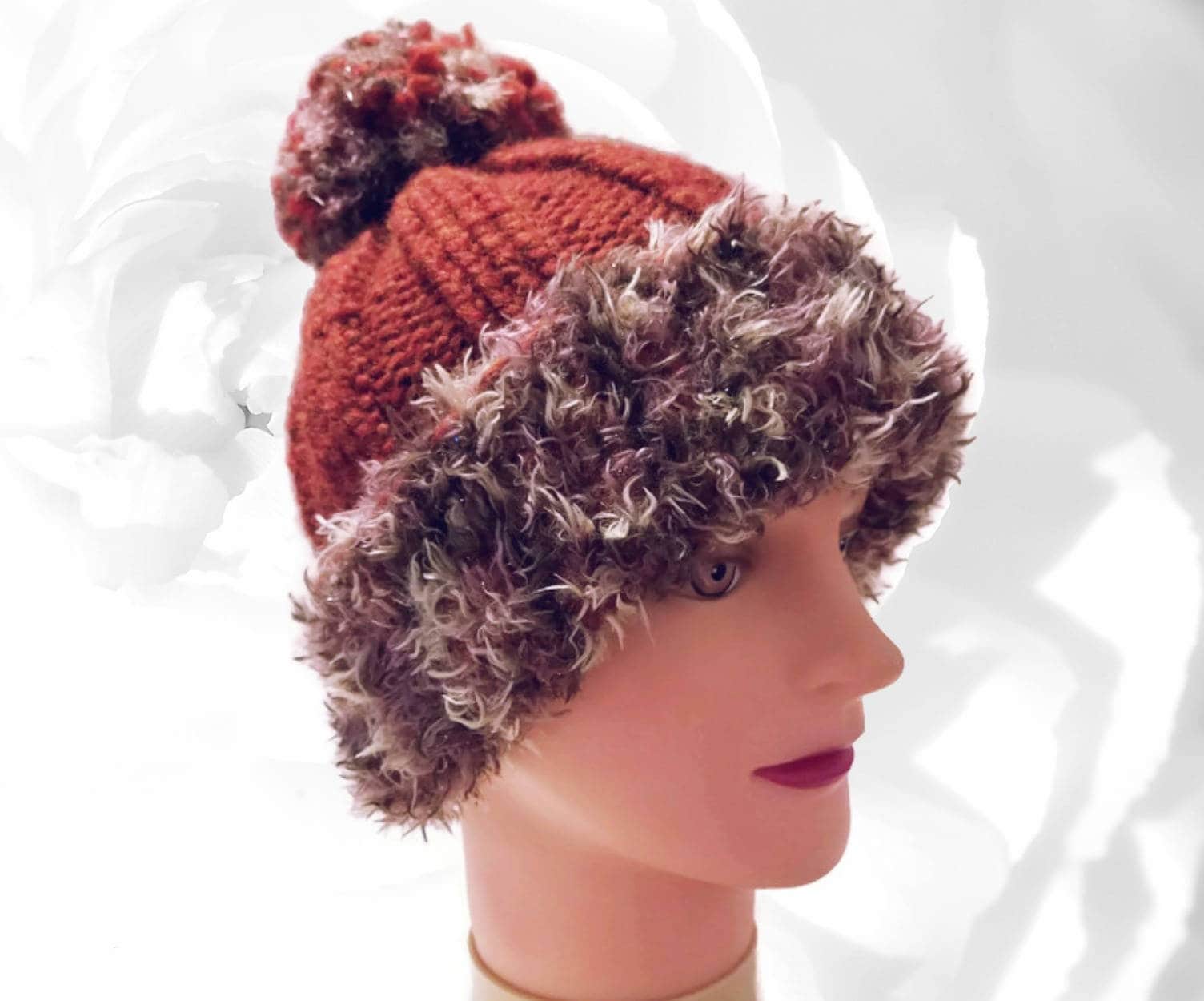 Brown pom pom hat clearance