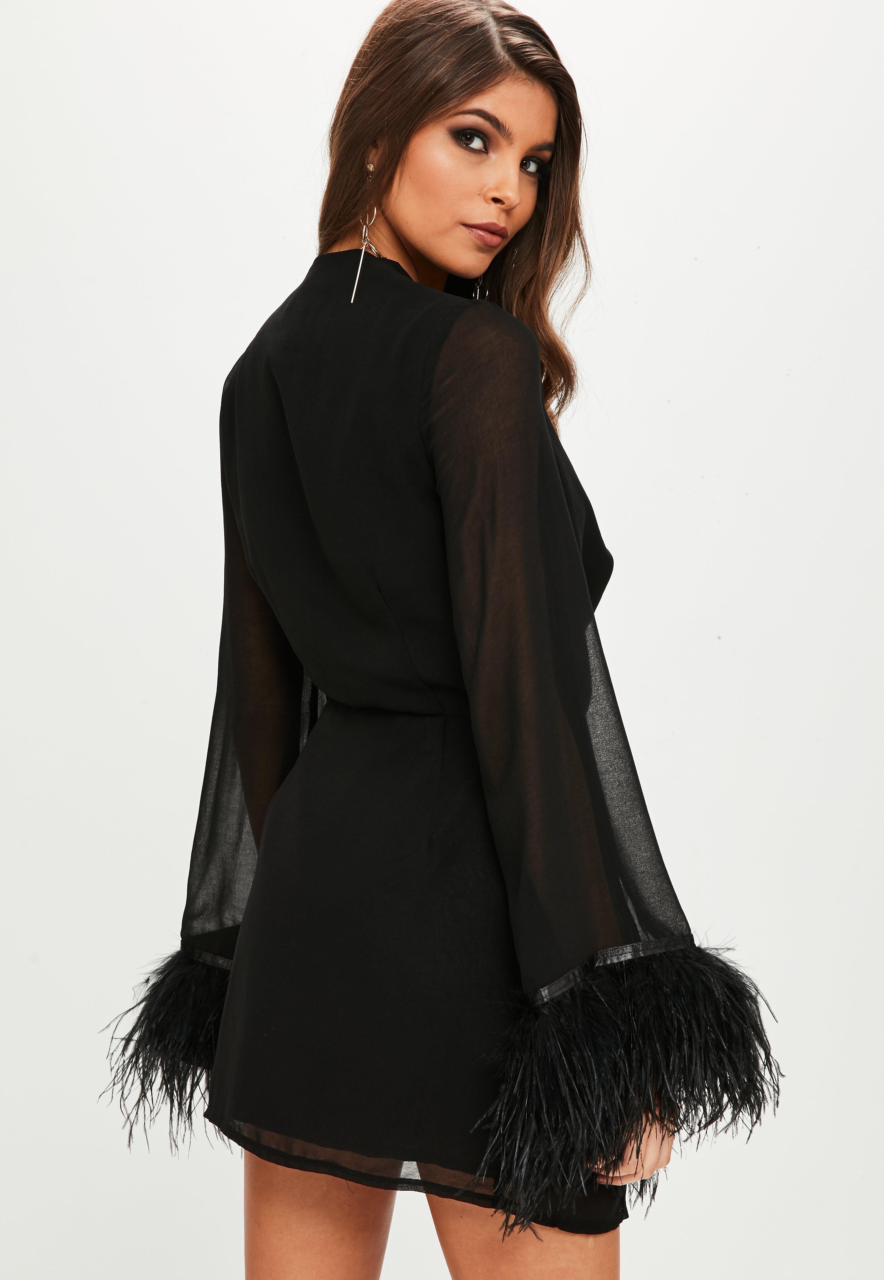 Black dress with feather sleeves clearance, Missguided Black Chiffon Feather Sleeve clearance