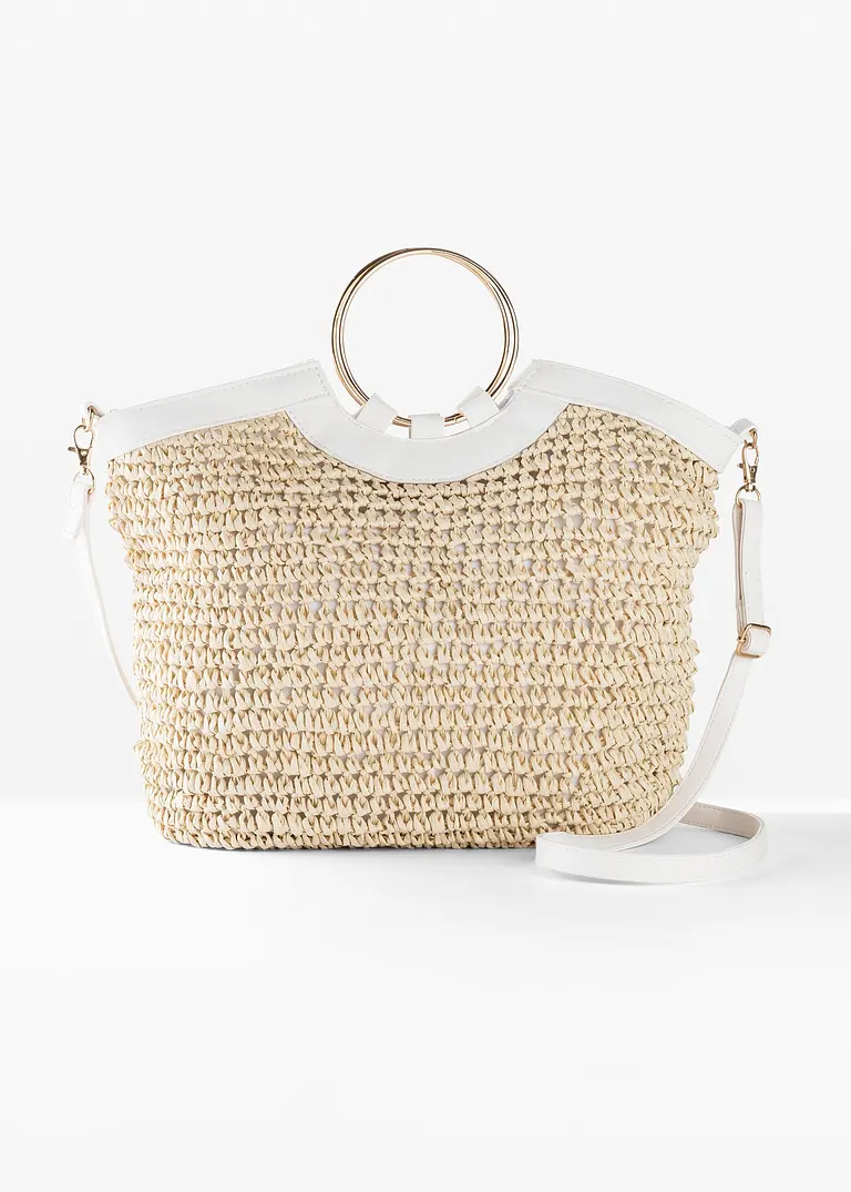 Bonprix basttasche clearance, Strohhandtasche mit abnehmbarem Taschengurt clearance