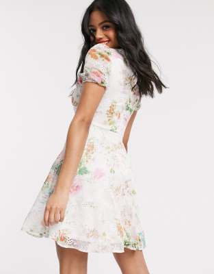 Lipsy printed broderie mini dress clearance