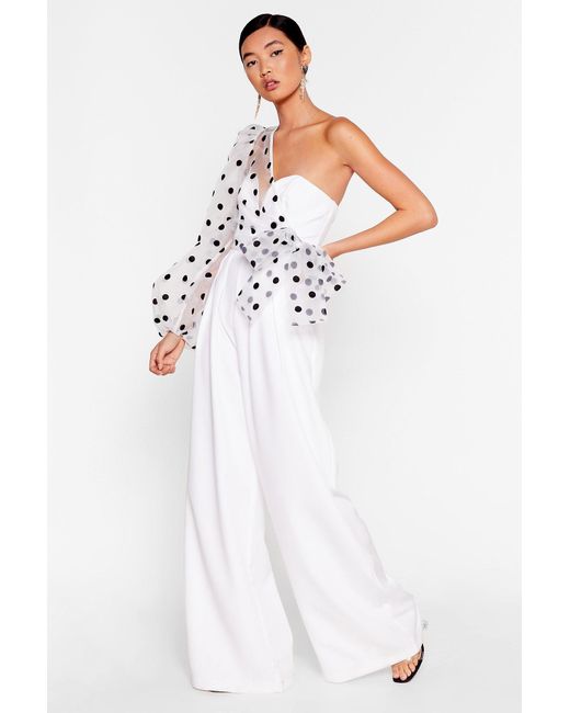 - Polka dot organza one shoulder jumpsuit shop
