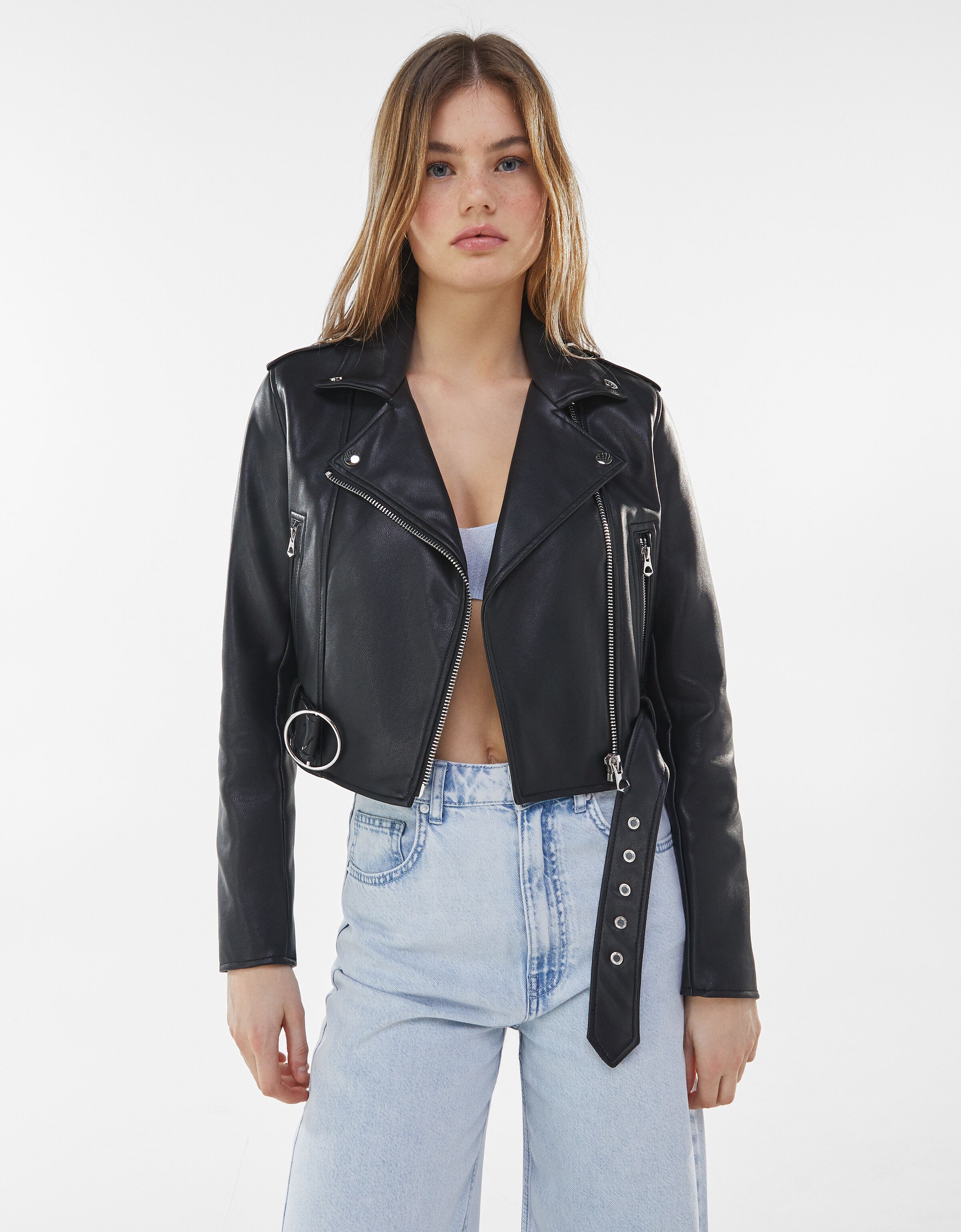 - Cropped leather jacket bershka outlet
