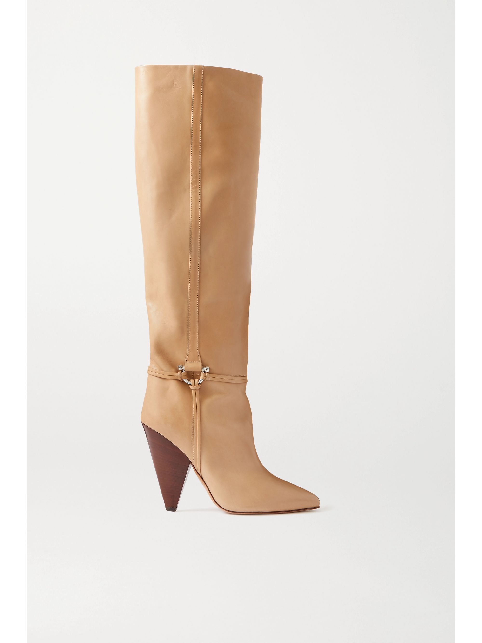 - Beige leather knee boots