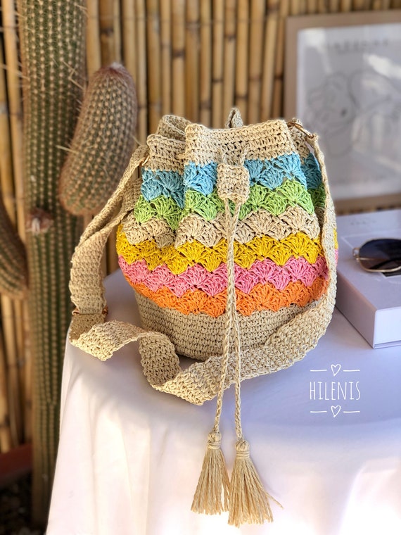 Beuteltasche stroh clearance, Bunte Luxus Crossbody Tasche, handgemachte gehäkelte Raffia Beuteltasche, Stroh Kordelzugbeutel - Etsy.de clearance
