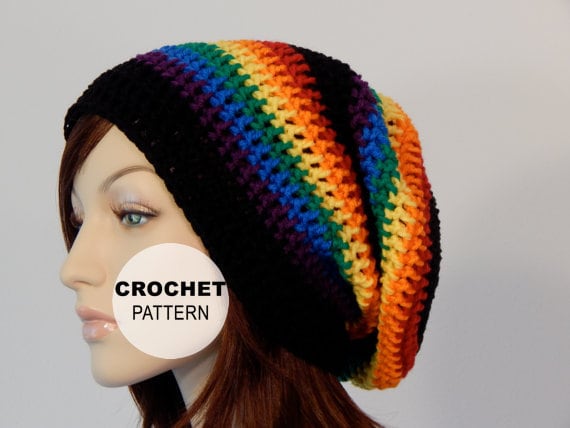 Rainbow slouchy beanie clearance, Rainbow Crochet Slouchy Beanie Rainbow clearance