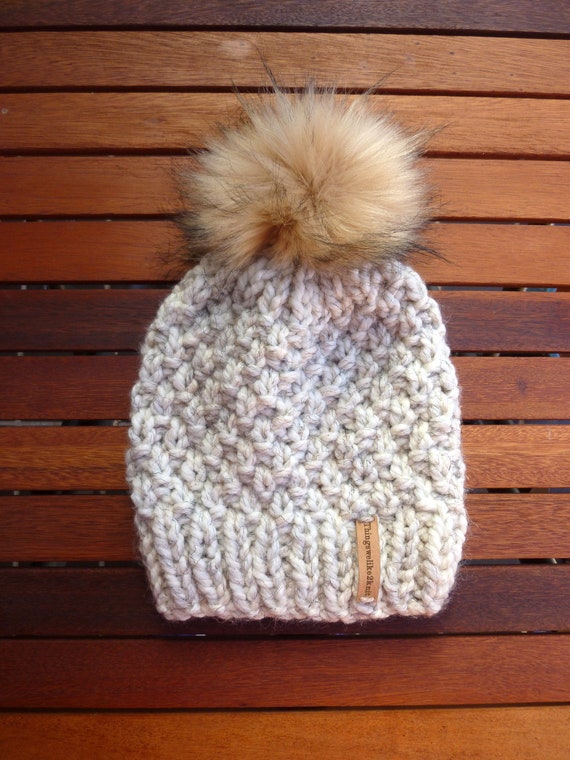 Ladies cream wool hats clearance, Chunky knit beige Beanie. Cream hat clearance