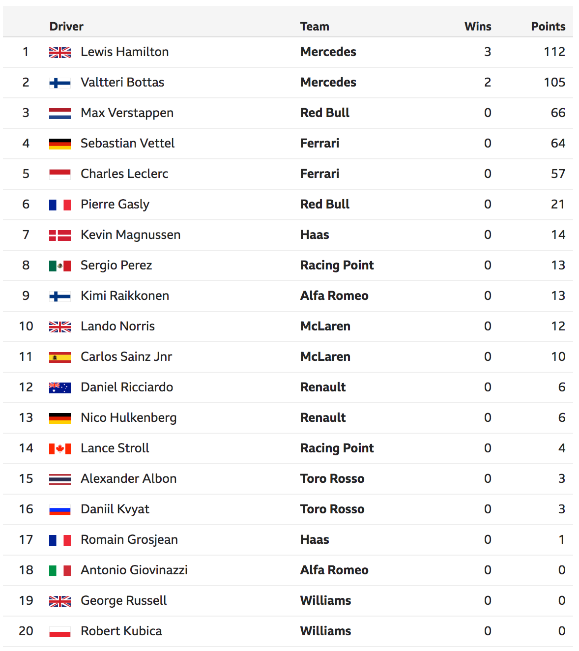 - F1 2019 driver standings