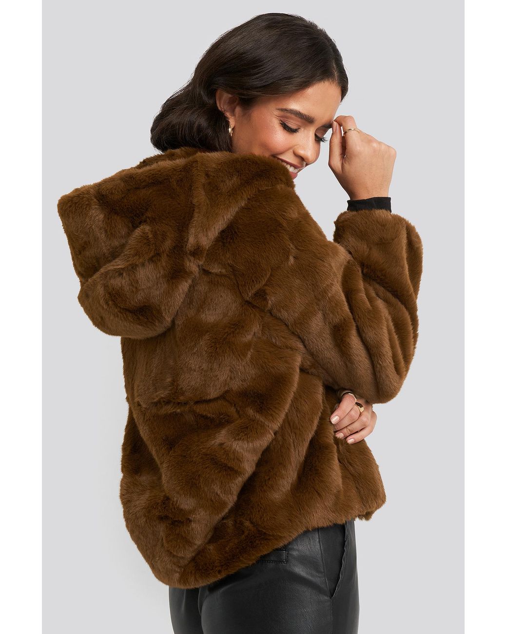 - Brown faux fur coat with hood shop