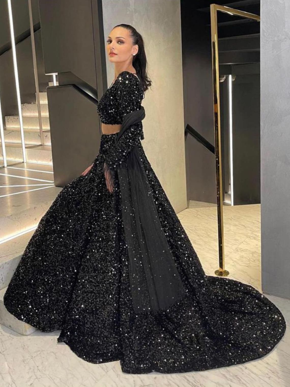 - Full black sequin lehenga outlet