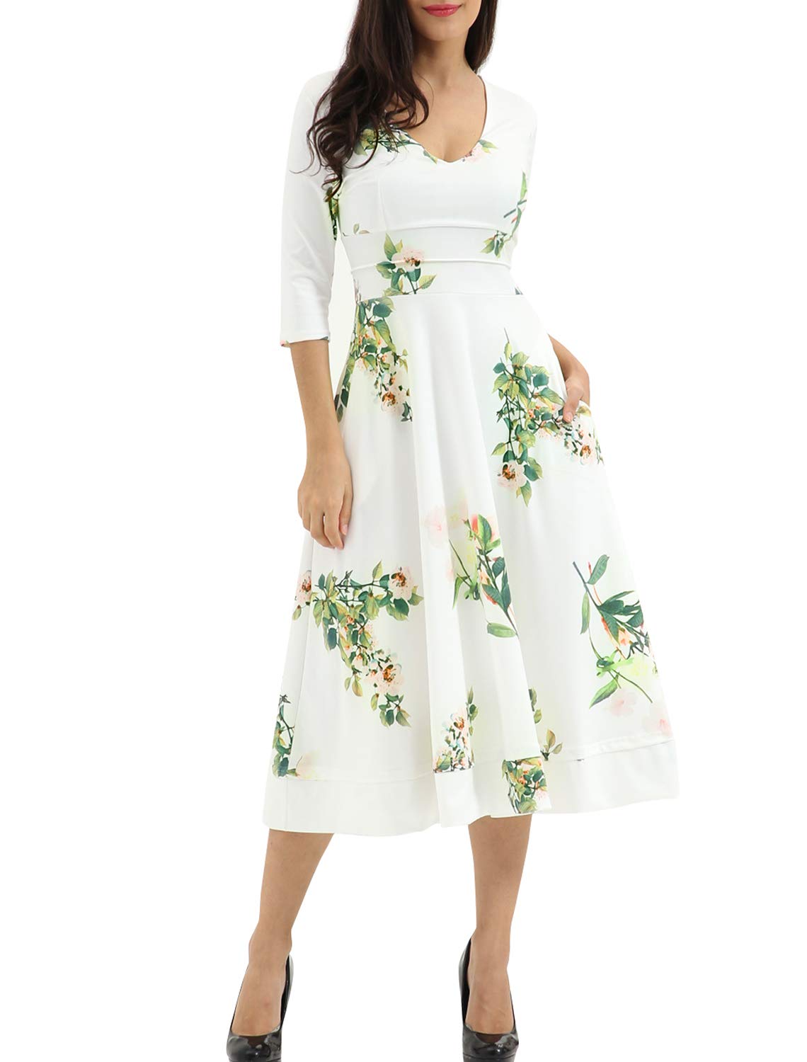 Velvet midi swing dress clearance, Noctflos Women's Half Sleeve Vintage Floral Deep V Neck Midi Swing Dress with Pocket clearance