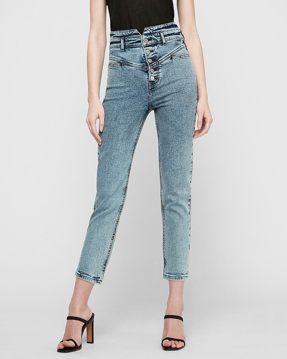 Super high waisted button fly jeans clearance, Express Denim Super High Waisted clearance