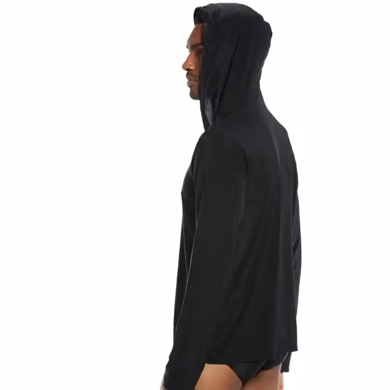 Hooded sleep shirt clearance, sleep top ice silk nylon sleepwear men clearance