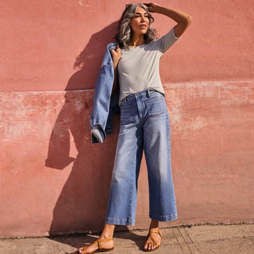 7 8 jeans mit weitem bein clearance, Soft Denim 7/8-Hose mit weitem Bein für Damen in Petite-Größe | Lands' End clearance