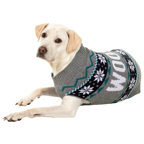 Simply dog sweater clearance, Simply Dog Gray Woof Fair Isle Sweater clearance