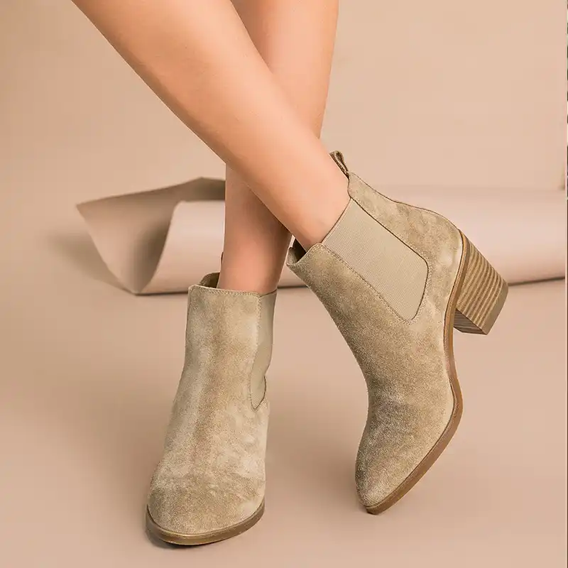 - Short brown boots with heel