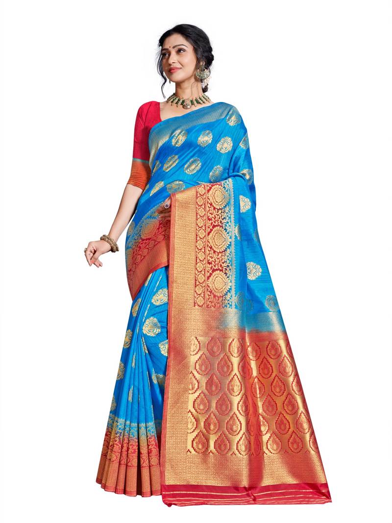 - Red and blue banarasi saree free shipping