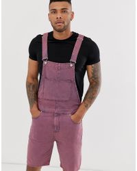 Purple dungarees mens clearance, ASOS Denim Dungaree Shorts in Pink for clearance