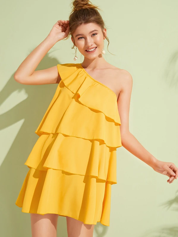 - One shoulder layered dress sale