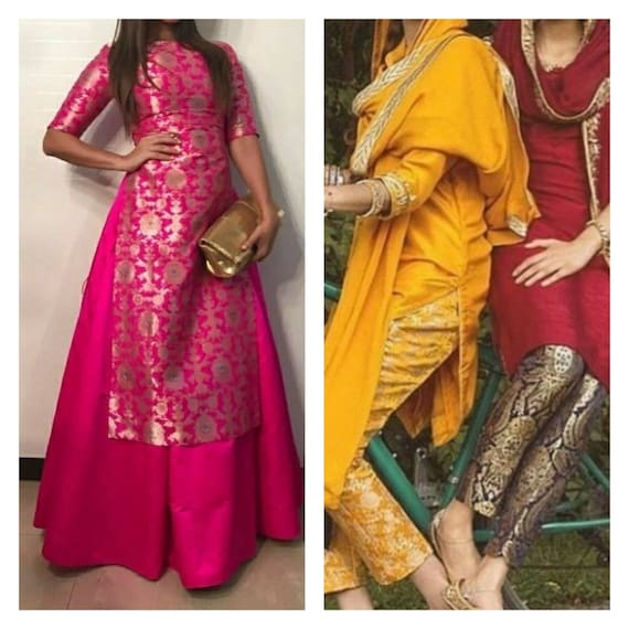 Brocade kurta with skirt clearance, Pink brocade kali kurta and banarsi clearance