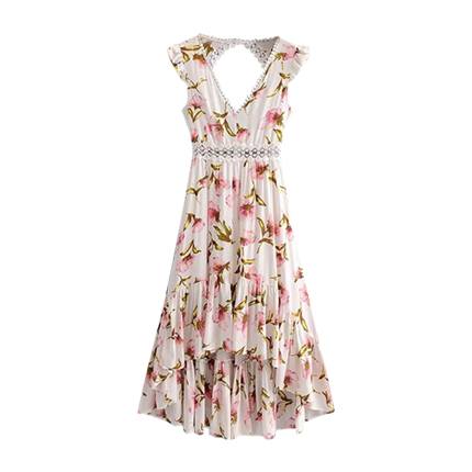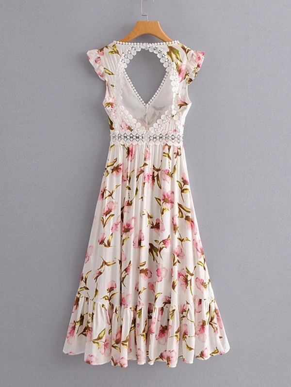 - Lace panel open back dip hem dress free shipping