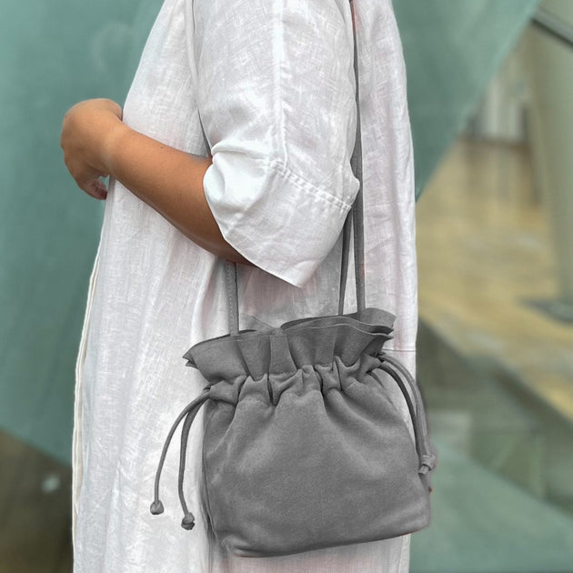 Handtasche wildleder grau clearance, Graue Wildleder-Öko-Tasche in Beutelform clearance