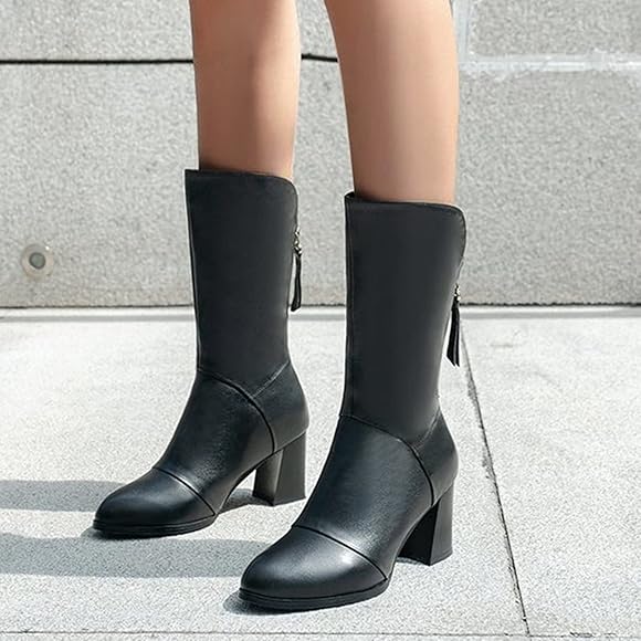 Damen boots gr 45 clearance, FGUUTYM Damen Gr. 45 High Pure Chunky Breathable Heels Barrel Boots Schuhe Damen Reißverschluss Winter Farbe Größe Stiefel Retro High Thigh Belt Plus ... clearance