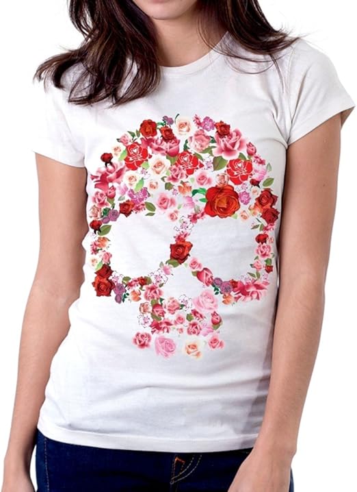 T shirt con fiori clearance, t-Shirt Donna Teschio con i Fiori clearance